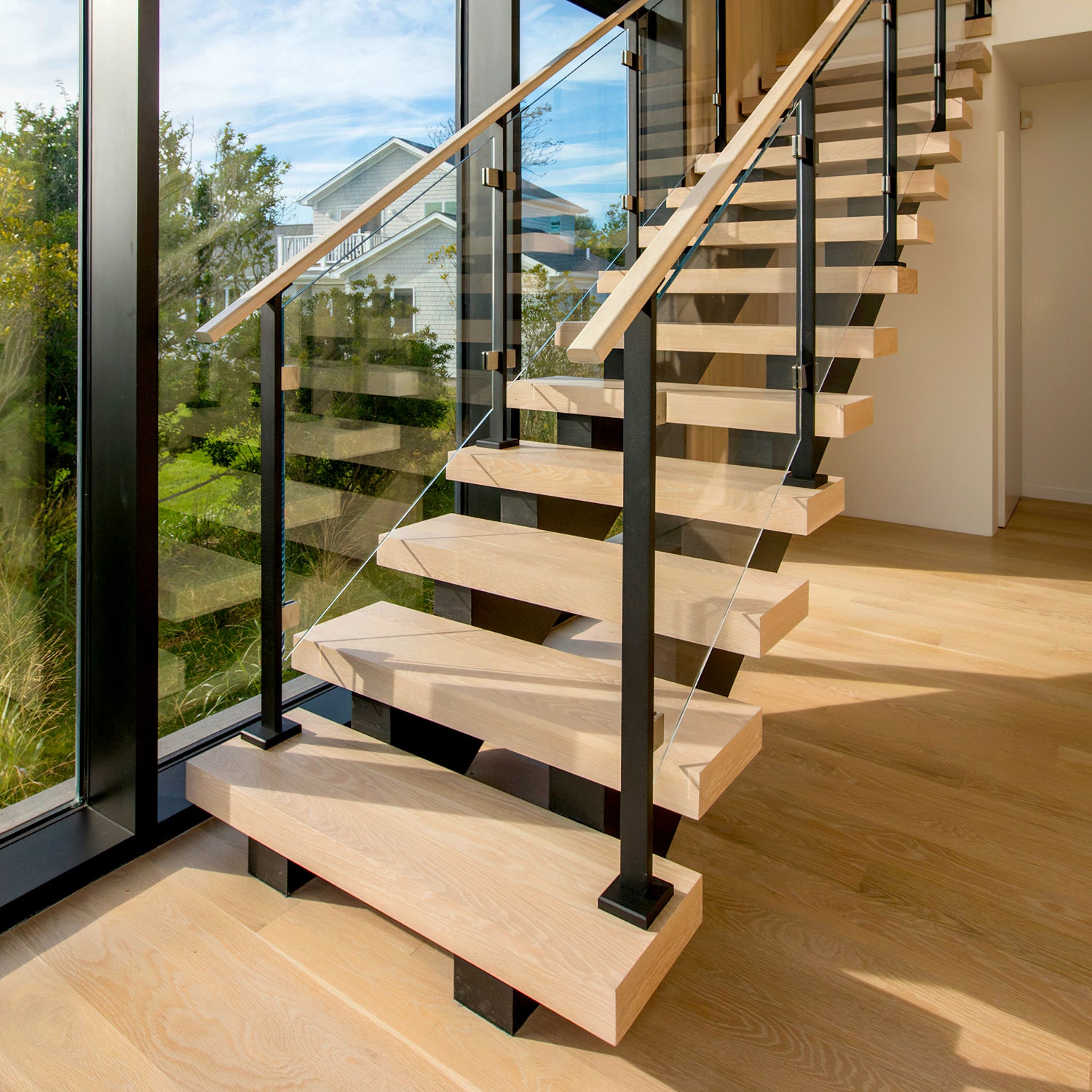 A modern, glamorous aesthetic designed to maximize natural light and unobstructed views. Custom-fabricated to create a seamless, floating appearance.