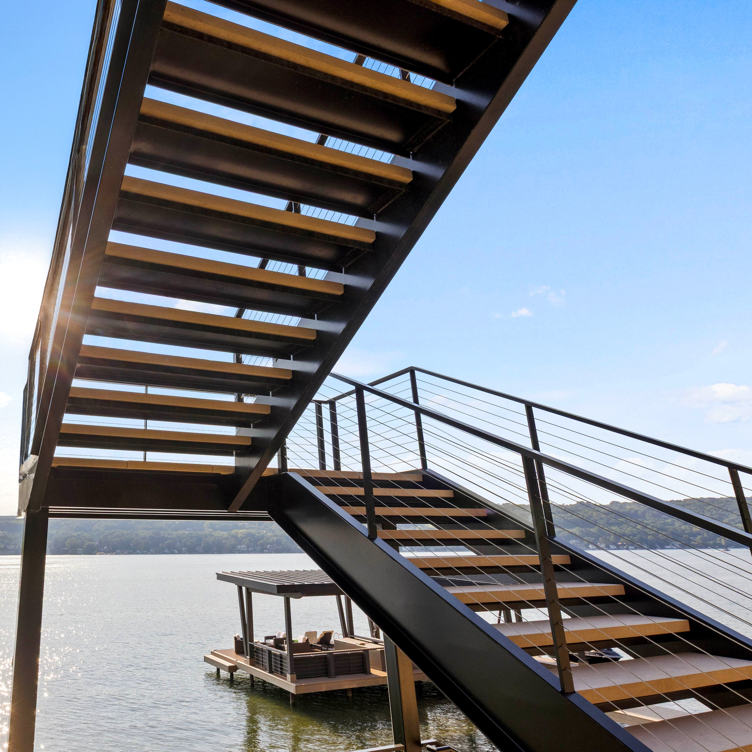 Conquer any stair or ramp angle with the Keuka Stair Fitting, specifically designed for a clean and secure installation on metal posts. This fitting combines our patented, tool-free swageless technology with an articulating head that pivots to perfectly match the angle of your stairs, ensuring a clean, parallel cable run every time.